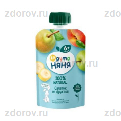 ФрутоНяня пюре салатик из фруктов яблоко/банан/груша/персик 90г