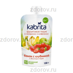 Кабрита пюре фруктово-овощное с козьими сливками мяг.уп. 100мл банан с клубникой и яблочным пюре