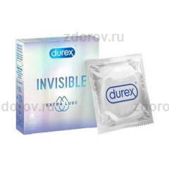 Презервативы ДЮРЕКС №3 Invisible extra lube (натур. латекс)